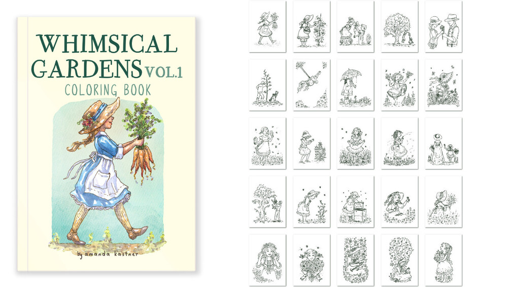 Experience the simple joys of gardens and nature in this whimsically illustrated, printable coloring book. Explore a miniature garden scene or portrait on every page!